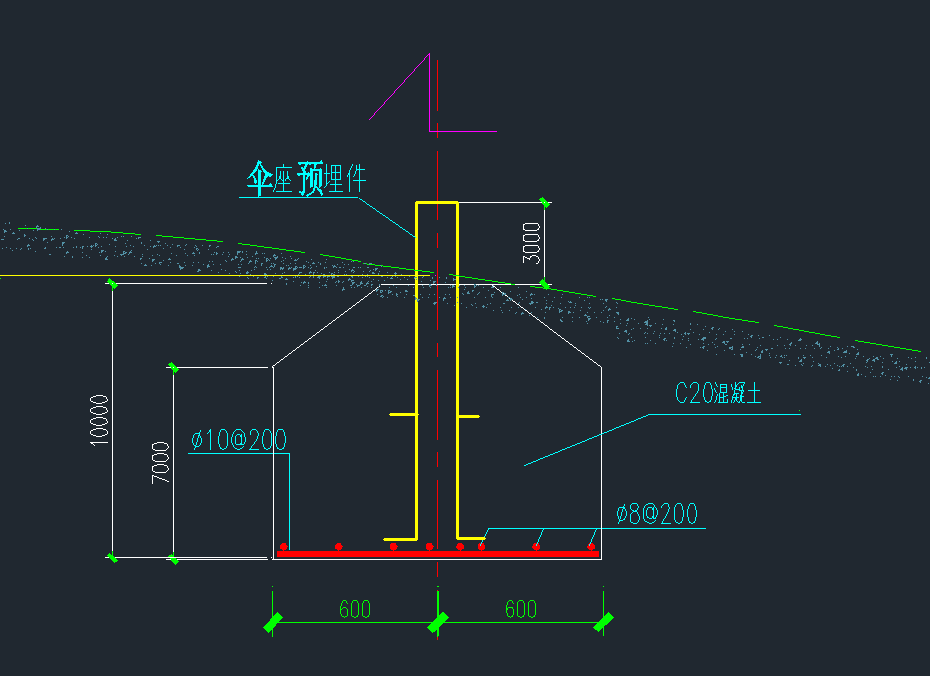 傘座預(yù)埋件基礎(chǔ)示意圖